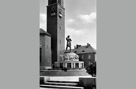 Am 30. August 1970 erfolgte die Aufstellung der Rüdigerskulptur in der Parkanlage vor der Herz-Jesu-Kirche in Neugablonz - einem Stadtteil von Kaufbeuren im Allgäu.